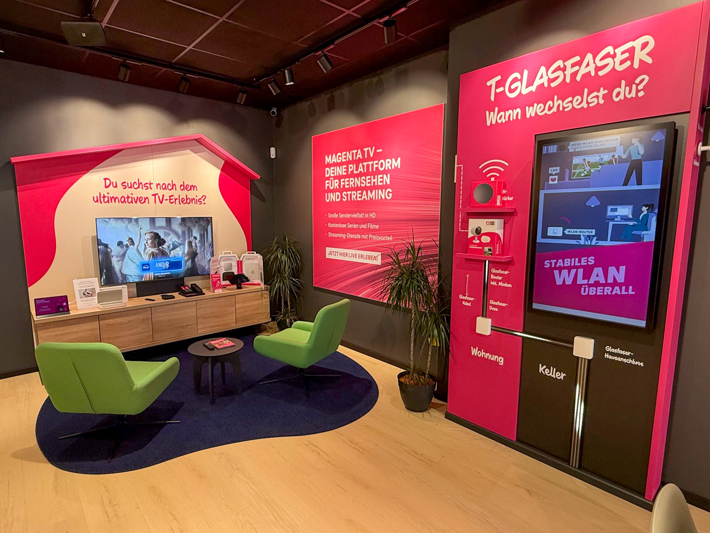 1) Aktion gilt bis 02.02.2026 für Breitband-Neukunden, die in den letzten 3 Monaten keinen Breitbandanschluss bei der Telekom hatten. MagentaZuhause XL kostet in den ersten 3 Monaten 9,95 €/Monat, danach 55,95 €/Monat. Bei Miete eines Routers im Endgeräte-Service-Paket (ab 6,95 €/Monat) erfolgt eine Router-Gutschrift i. H. v. 100 €. Hardware zzgl. 6,95 € Versandkosten. Einmaliger Bereitstellungspreis für neuen Telefonanschluss 69,95 €. Mindestvertragslaufzeit für MagentaZuhause 24 Monate, für den Router 12 Monate. Alle Preise inkl. der gesetzlichen MwSt. MagentaZuhause XL ist in vielen Anschlussbereichen verfügbar.